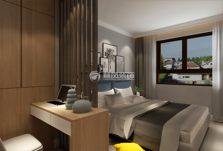 華潤二十四城120平3居室現(xiàn)代輕奢風格林鳳裝飾的臥室是居家休息最重要的區(qū)域,所以實用性和實用率都是非常重要的。臥室整體明亮通透,床品與窗簾色彩一致,石膏線條床頭背景互相呼應(yīng),背景墻添加幾分暖意打造出一個簡潔、舒適的居住空間。