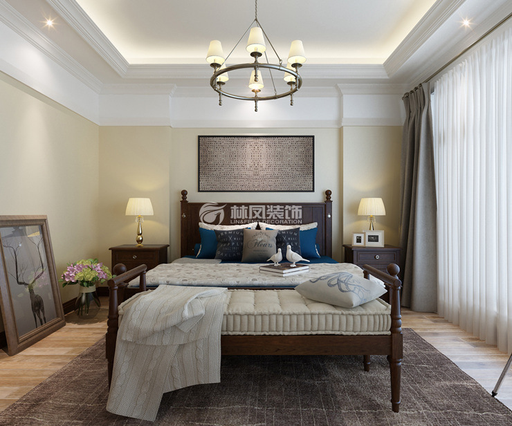 【主臥室說(shuō)明】主臥室整體顏色偏深,搭配有層次感的軟包造型床頭,讓居住空間更顯品位。而其他臥室整體顏色卻剛好相反的偏淺,只保留實(shí)木的風(fēng)格家具為主色,然后采用美式風(fēng)格對(duì)整個(gè)空間進(jìn)行裝飾,運(yùn)用簡(jiǎn)潔明快的美式線條,搭配相對(duì)樸實(shí)無(wú)華的家具及配飾,讓整個(gè)空間體現(xiàn)出純正的質(zhì)感,靜逸舒適的空間布局。讓業(yè)主置身其中,感受家的舒適與溫馨。