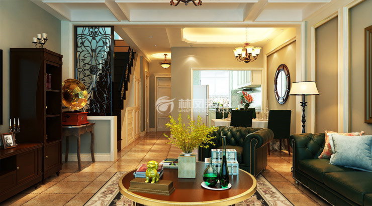 設(shè)計(jì)理念:根據(jù)設(shè)計(jì)師與業(yè)主的溝通,發(fā)現(xiàn)業(yè)主喜歡的元素多為美式風(fēng)格元素,所以本案裝修風(fēng)格定位為美式風(fēng)格,地面為仿古磚,搭配深色原木家具。軟裝飾搭配絲絨,金銀色絲線等,飾品擺件以粗紋理的瓷器和多色彩的配飾。