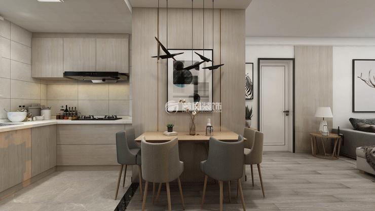 金輝優(yōu)步學(xué)府120平三室兩廳現(xiàn)代風(fēng)格林鳳裝飾的廚房的櫥柜整體色調(diào)選擇了暖色系,原木色櫥柜搭配啞光瓷磚,既溫馨又舒服,廚房還采用了一個百葉簾設(shè)計,既遮擋了強(qiáng)烈的光線又起到私密性設(shè)計。