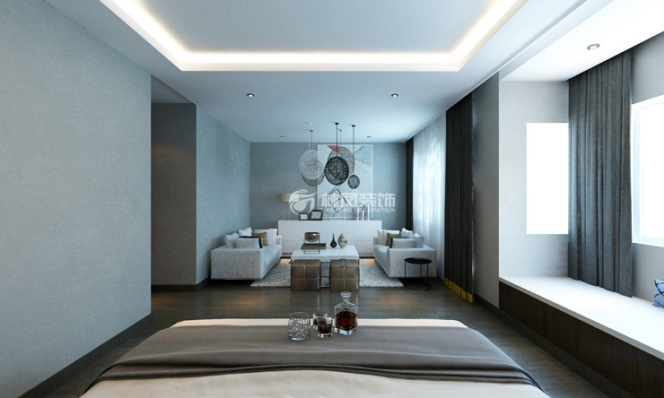 【主臥室說明】主臥是套房設(shè)計(jì),所以在床頭背景上采用了別致的硬包與金屬條設(shè)計(jì)。臥室空間較大,因此飄窗的設(shè)計(jì)不僅多了儲(chǔ)物空間,還可以讓主人在閑暇之余休息一下。