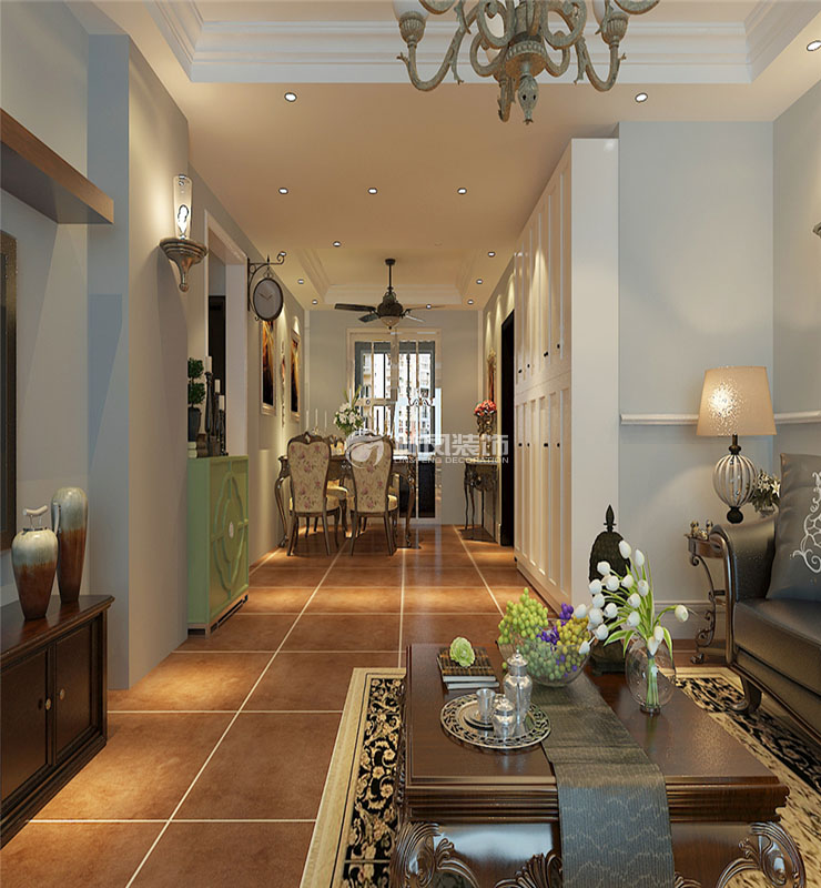 中海寰宇天冠101平三室兩廳美式風(fēng)格林鳳裝飾的過(guò)廊