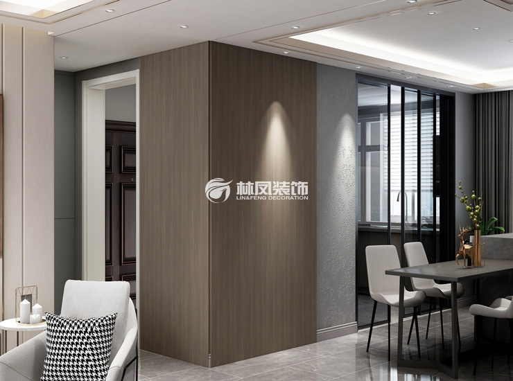 華潤(rùn)萬(wàn)象城139平四室兩廳港式輕奢風(fēng)格林鳳裝飾的餐廳這里著重裝飾墻面,利用深木色的護(hù)墻板,為餐廳提高就餐環(huán)境的檔次。