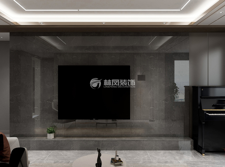 華潤(rùn)萬(wàn)象城139平四室兩廳港式輕奢風(fēng)格林鳳裝飾的客廳整個(gè)大廳利用深點(diǎn)的地磚與電視背景墻的深色理石遙相呼應(yīng),為客廳增加沉穩(wěn)的氣場(chǎng)。