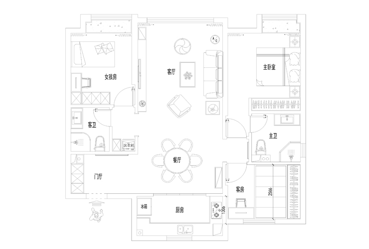 本案以北歐風格為主題的設(shè)計,北歐風格能以現(xiàn)代、簡潔、自然的特點俘獲人心,所營造出來的生活氛圍會讓人倍感舒適與自在。