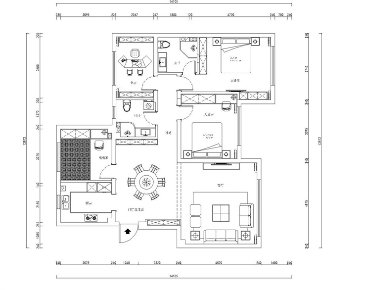 設計理念:房子為客戶自住、改善性住房,業(yè)主追求干凈、傳統(tǒng)、古樸的生活環(huán)境,同時對格局有很大期望,所以,本案已實用及合理性做布局,定義為新中式風格。