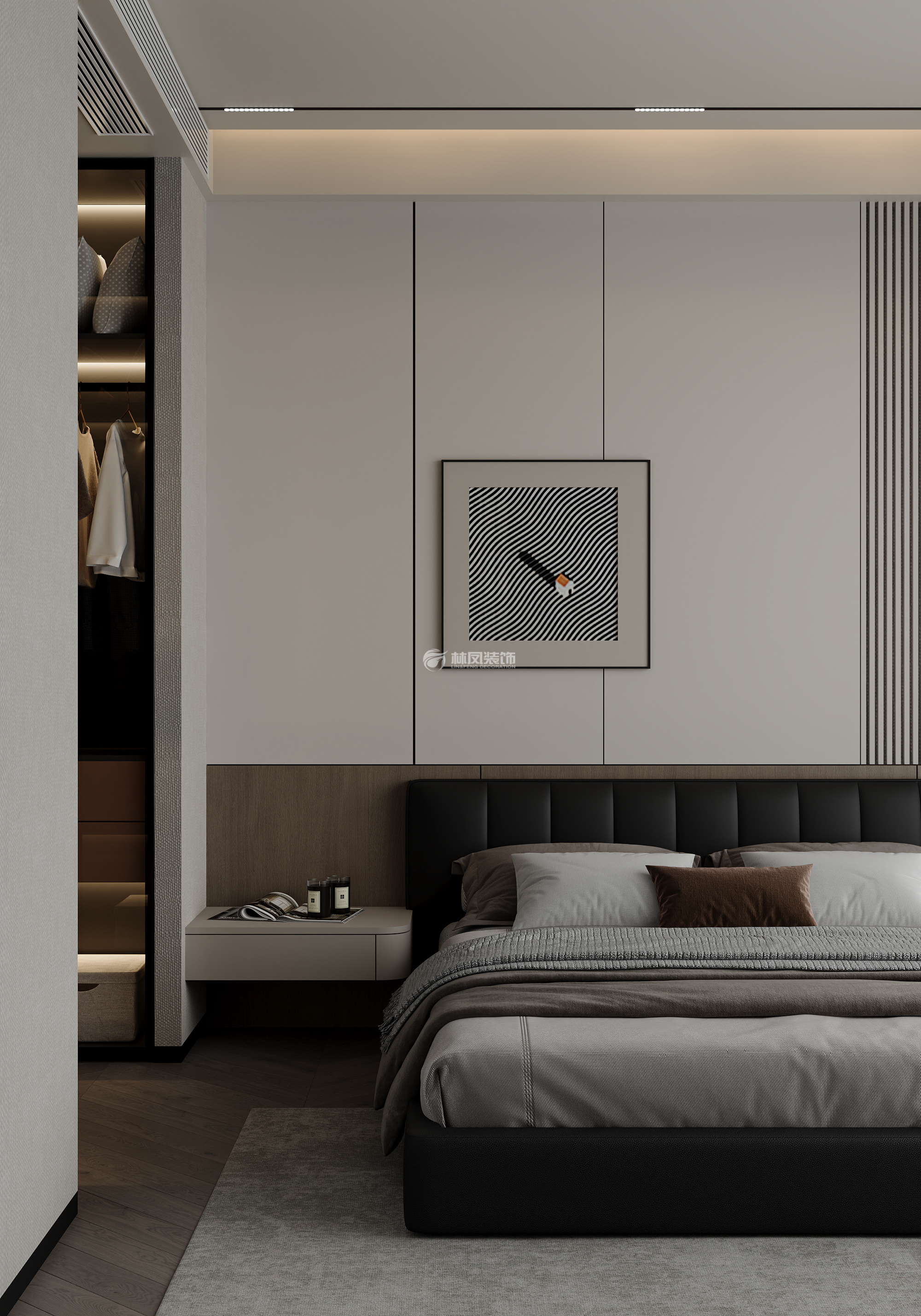 客戶是一名成功人士,對(duì)于家的執(zhí)念就是簡(jiǎn)單干凈,客戶衣服比較多,所以把每個(gè)空間都做了大衣柜,并且融入到設(shè)計(jì)里