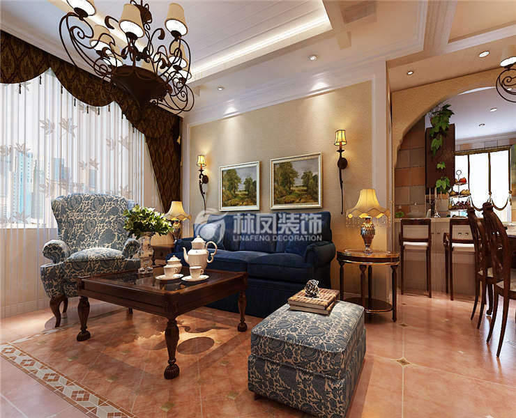 客廳主要以暖色調(diào)為基礎(chǔ),墻面是使用最環(huán)保的硅藻泥,背景墻較為經(jīng)典的石膏板造型和鐵藝相結(jié)合,構(gòu)造出不同的風采,美式田園風格中極具代表性的元素,是從床上用品到沙發(fā)、靠墊等各鐘紡織用品,凡帶有大型或者大面積花卉圖案的都有可能被美國家庭用來裝飾,他們獨有清新的鄉(xiāng)間氣息,只需看一眼,自由奔放,溫暖舒適感受就會躍然心頭。