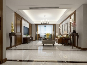 本案設(shè)計(jì)風(fēng)格為歐式美式風(fēng)格,采用美式軟裝家具和地磚石材,與屋內(nèi)的軟裝搭配更顯舒適安逸。