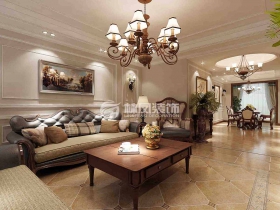 本案設(shè)計(jì)風(fēng)格為歐式美式風(fēng)格,采用美式軟裝家具和地磚石材,與屋內(nèi)的軟裝搭配更顯舒適安逸。