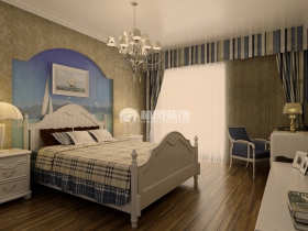 本案是歐式中的一種比較清新浪漫的地中海風(fēng)格,石膏板假梁,抽縫的元素造型,讓大地黃的底色壁紙和海藍(lán)色的實(shí)木家居之間的搭配,來(lái)營(yíng)造溫馨的爛漫的地中海情懷。