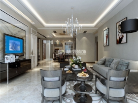 本案以簡(jiǎn)潔明快的設(shè)計(jì)風(fēng)格 打造了一個(gè)對(duì)比強(qiáng)烈,質(zhì)感鮮明的現(xiàn)代居住空間,主要以爵士白大理石為主色調(diào),在地面,廚房等位置大量使用,優(yōu)雅且端莊。吊頂?shù)脑O(shè)計(jì)更是以簡(jiǎn)單且有創(chuàng)意的造型處理,區(qū)別于普通常見的邊棚造型,幾處個(gè)性的頂面造型增添了空間的層次感,更使燈光多元化。