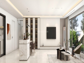 設(shè)計師整體設(shè)計理念:本案以現(xiàn)代元素為主,采用理石質(zhì)感的石材,搭配暖灰色木質(zhì)定制類家具,配以亞麻質(zhì)感的軟裝飾品,打造一種現(xiàn)代時尚簡潔的居住空間