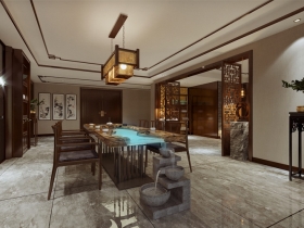 設(shè)計師整體設(shè)計理念:經(jīng)過前期和客戶的溝通,把兩戶合并成一戶,加大面積。留一戶進(jìn)戶門。目前客戶還沒退居一線,所以家里還要具備辦公功能。酷愛中式風(fēng)格裝修,喜歡讀書,書法。所以在設(shè)計時加大了書房面積,并設(shè)置了獨立茶室。